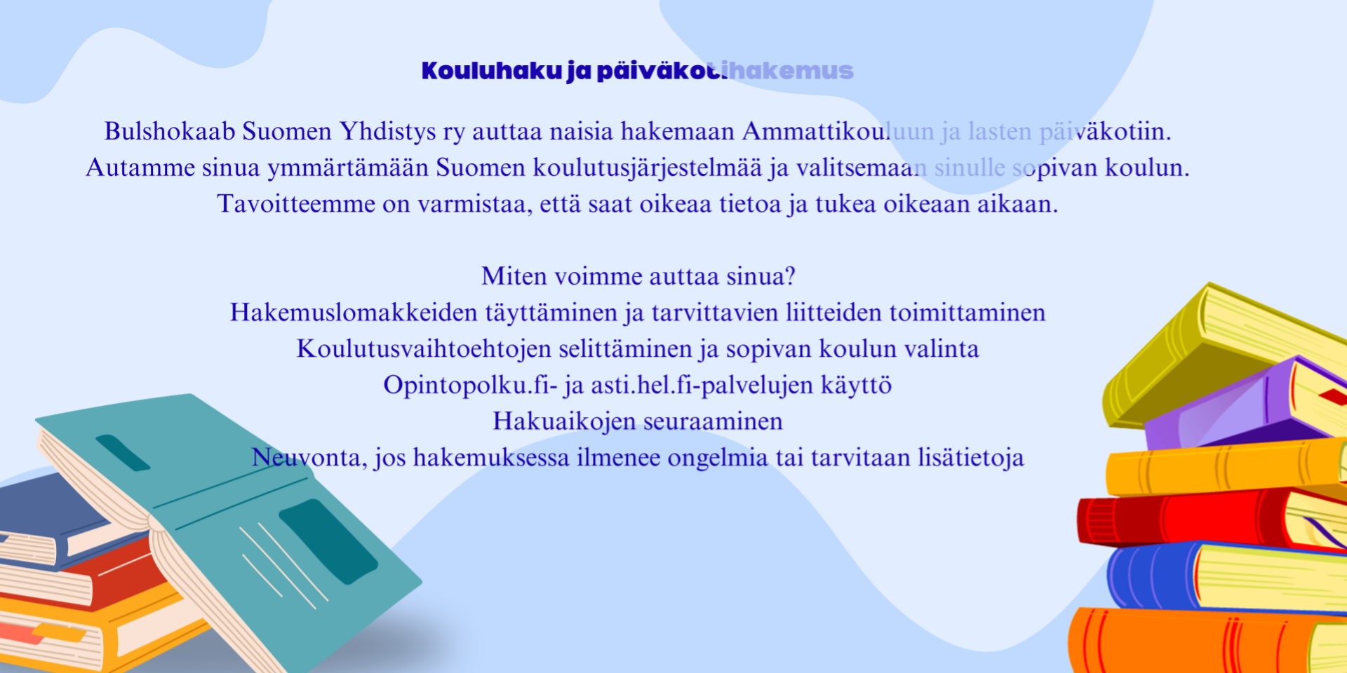 Bulshokaab Suomen yhdistys Ry tarjoaa digitaalista tukea ja auttaa sinua hoitamaan päivittäisiä tärkeitä asioitasi helposti. Tuki on ilmaista ja se on tarkoitettu maahanmuuttajanaisten ja heidän perheidensä käyttöön Helsingissä, erityisesti somaleille.